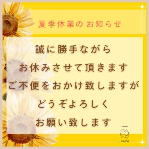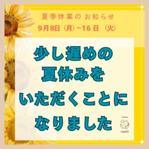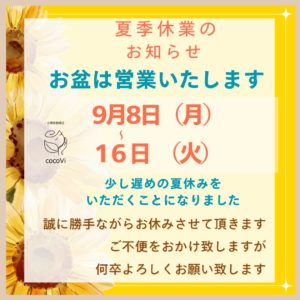 【夏季営業と9月休業のお知らせ】
