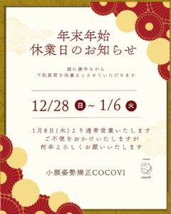 2025年12月28日(日)〜2026年1月6日(火)までお休みをいただきます。
